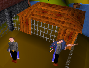| Port Sarim | The Port Sarim Jail has five cells and each are inaccessible areas. From north to south, west to east: a Thief, a Pirate, Wormbrain, a mugger, and a Black Knight are imprisoned here. Unlike in RuneScape 2, players are not transported inside a cell when they offend Shantay & his men. Instead, players are placed just outside. | ||