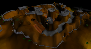 | Bordering the Underground Pass | The Underground Pass is actually only partially underground. The pit that players fall in, with Souless, Klank, Niloof, and Kamen, it's actually on ground level. To keep the illusion of it being underground, a fence was built all the way around the area, with a small buffer in between so players couldn't peek in. Without this buffer, players would be able to see into the Underground Pass from the areas south of Tree Gnome Stronghold and west of the Grave of Scorpius. On the official world map, this area was called Impassable mountain terrain, though interestingly, it is only the metal fence that prevents players from walking right over it into the depths of Iban's lair. | ||